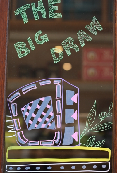 Op woensdag 7 oktober, op een druilerige herfstdag werd The Big Draw voorgesteld in het Cas-co te Leuven. Van het station tot het Cas-co deden vrolijke raamtekeningen van THE BIG WINDOW WALK me eventjes de miezerige regen vergeten.
