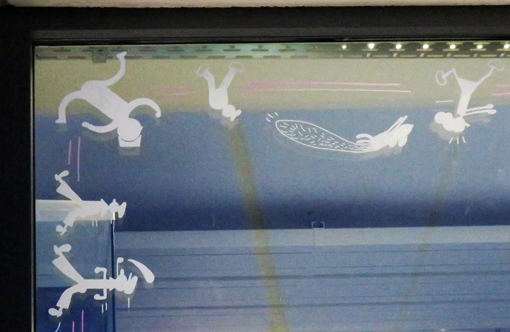Verderop waren Ansgar Reul en Maurice Vink aan het werk in Nemo&Co. Een voorontwerp was er niet. Zij lieten zich constant inspireren door de hyperactieve shoppers van de Dietse straat. Ansgar Reul en Maurice Vink laten leuke figuren hun Big Window Walk stappen op de randen van de winkelramen van Nemo&Co. Info: mail@ansgarreul.com