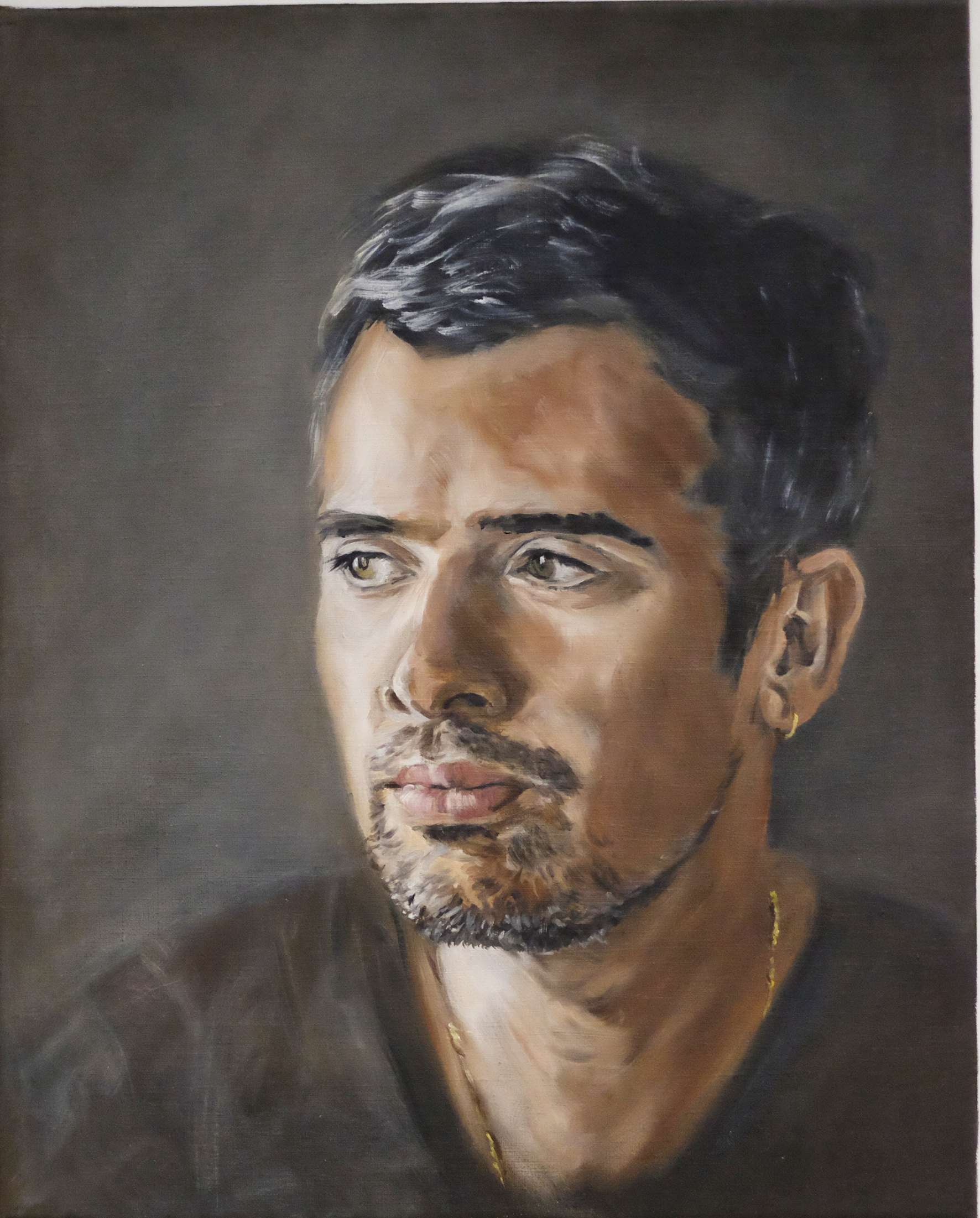 RC Ik wil vooral weten hoever ik met mijn schilderkunst sta in het bijzonder het portret. Ik vrees dat ze mijn werken te braaf zullen vinden. Ik werk vooral fotografisch realistisch tegen de heersende smaak in. Gelijkenis is voor mij belangrijk. Wat me intrigeert is het spel van licht en schaduw. Omdat die zoveel over een persoon vertellen schilder ik graag de handen erbij. Met mijn portretten geef ik graag het innerlijke weer en schilder daarom het liefst naar model. Ik hou van een warme uitstraling die van het doek uitgaat. Mensen moeten blij mijn atelier verlaten. Naar model schilderen is niet altijd mogelijk, dan werk ik vaak naar foto’s. Die foto’s neem ikzelf, het moeten goede foto’s zijn die het karakter van het model weerspiegelen.
