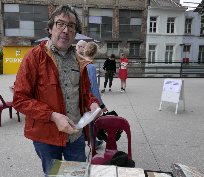 Verrast flaneerde ik om 11u over het Miriam Makeba plein, standjes verzameld onder een vaalgrijze lucht vrolijkten het hele gebeuren op. Boekhandel Paard van Troje, de giftshops La Vie en Prose, De Ongebonden Boekbinderij, Steen, Schaar en de selfpublishing bedrijven Create My Books en Skribis… allen showden met verve hun literaire producten. Zie reportage kunstpoort