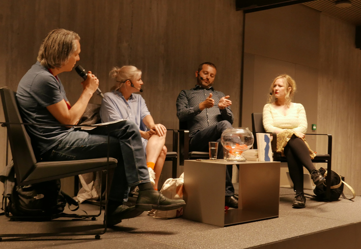 De Infosessie Kracht van Social Media leek me geknipt voor Kunstpoort. Zaal De blauwe vogel, een toepasselijke naam voor mijn zoektocht naar Social Media tips en tricks, liep aardig vol. Wim Oosterlinck fungeerde als dé geknipte moderator voor gesprekspartners Siel Verhanneman, Katrijn Vanbouwel en Kristof D’hanens. Het werd een pittige vlotte sessie, to the point. Een gevatte Wim Oosterlinck leidde de geanimeerde gesprekken en het onbevangen improvisatie acteertalent van Katrijn Vanbouwel in goede banen.