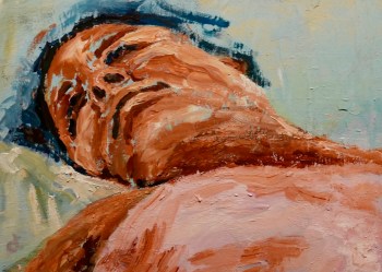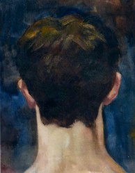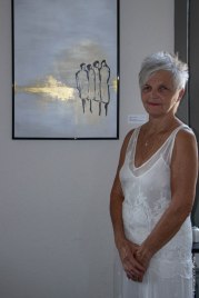 Tot slot zijn er de vrouwenlichamen van Ann Vermeersch. Ze zijn raak getekend, soms puur lineair, vaak met aquarel toetsen. Ann Vermeersch kan niet alleen raak tekenen, schilderen lukt ook aardig. Mij treft een schilderij met een donkerharig mannenhoofd achteraan gezien in bruine tinten, gevoelig geschilderd. Geen aangezicht is er te zien toch verraadt het werk de identiteit van een persoon. De tekenkunst is voor Ann Vermeersch duidelijk haar favoriete kunstvorm. Zij is er zeker bedreven in. Toch zou ik graag meer van haar schilderijen zien.