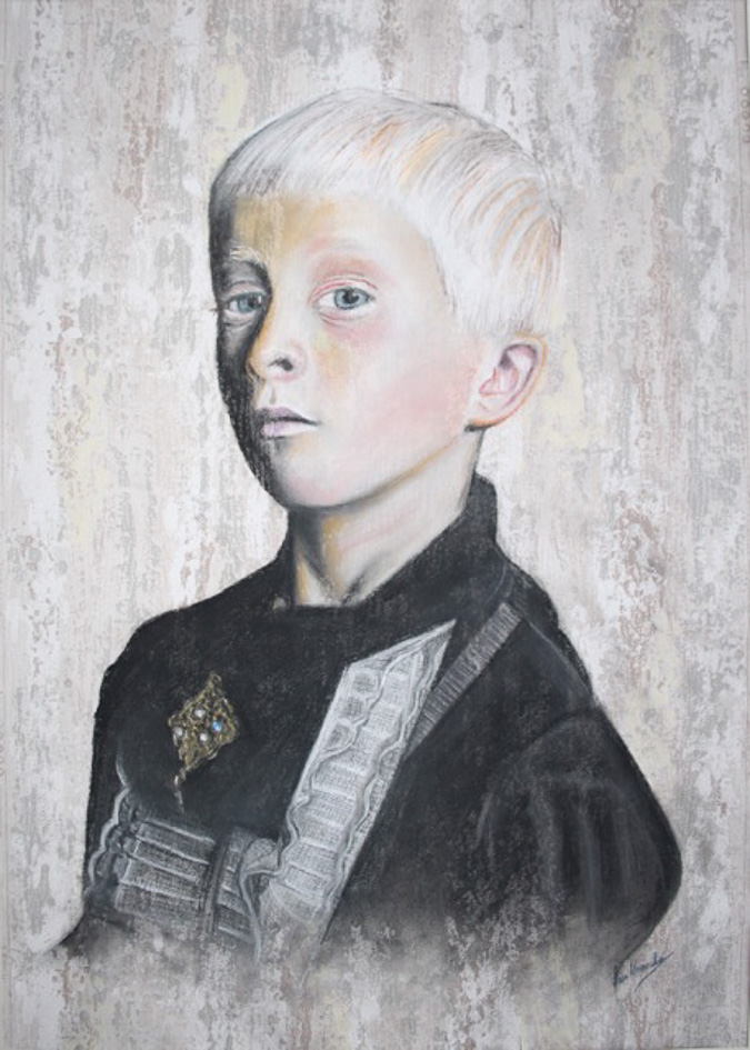 Hoe persoonlijker en hoe creatiever, hoe beter ze is. Haar beste werk tekent ze op een baan behangpapier. Dat doet ze meesterlijk. De twee portretten van Kasper, haar zoon en van Lea, haar lerares en mentor intrigeren door hun eenvoud, hun expressie, dat vleugje mystiek. De keuze van de achtergrond is telkens een schot in de roos. Het beeld krijgt iets bevreemdends moois. Leen Vereecken kan niet alleen goed tekenen, ze is empathisch, ze toont hoe ze zichzelf voelt en dat kan ze heel sereen overbrengen.