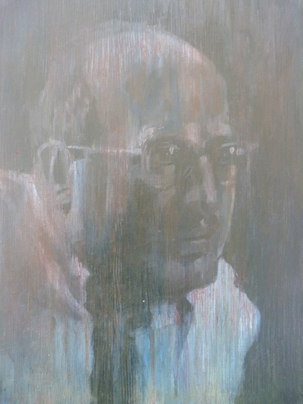 Van Rothko maakte hij ook een geschilderd portret, buitengewoon mooi: die vastberaden blik, zacht verdwijnend in het canvas, contemplatief, maar geschilderd in verticale borstelstreken. Ik zet er een foto van Luc naast. Het is alsof Rothko, de man die twintig jaar lang enkel zachtjes rafelende horizontale kleurenvelden schilderde, hem aankijkt: “Did you do this”? Typisch Luc De Roeck, denk ik: hij bewondert maar hij is geen slaaf. Hij aapt niet na.