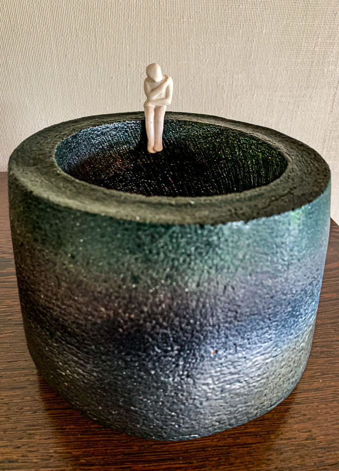 In een tijd waarin AI de wereld verovert, omarmt de kunstliefhebber in mij de authenticiteit van P.H.Jen. Zijn werkt roept reminiscenties op aan Picasso, Art brut, Corneille, Lucebert, diverse Cobra kunstenaars. Kunst brengt nieuwere kunst voort. Om het even uit welk vat P.H.Jen tapt, zijn schilderijen en installaties blijken onvervalst eerlijk. Ze zijn mentale, emotionele, poëtische selfies en etaleren een universum waarin de kunstenaar de hoofdrol speelt en waarin een ‘Goût du Bonheur’1 zich van het canvas meester maakt. P.H.Jen blijft stoïcijns doof voor de roep van de massamedia, voor een verstikkende beeldcultuur. Hij gaat zijn eigen weg, schildert een persoonlijk iconische wereld.