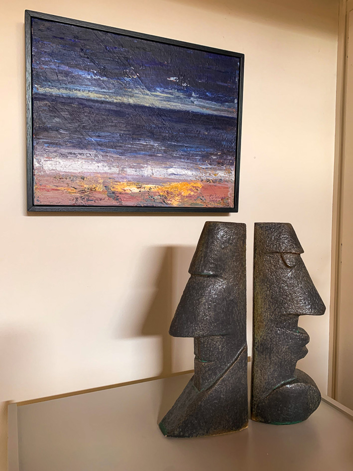 Ontelbare canvassen, groot en klein, beschilderd en blanco, ingepakt of niet… getuigen van een ontembare drang zijn verbeelding aan het doek toe te vertrouwen. In dit ‘pakhuis’ voor kunst met kunst en tot kunst verheven voorwerpen laat ik me vervoeren. Deze droom met P.H. Jen als reisgezel zal ik me blijvend herinneren.