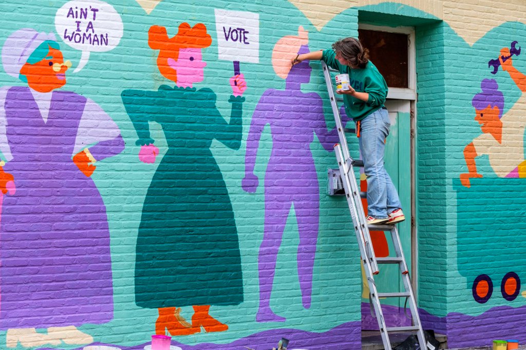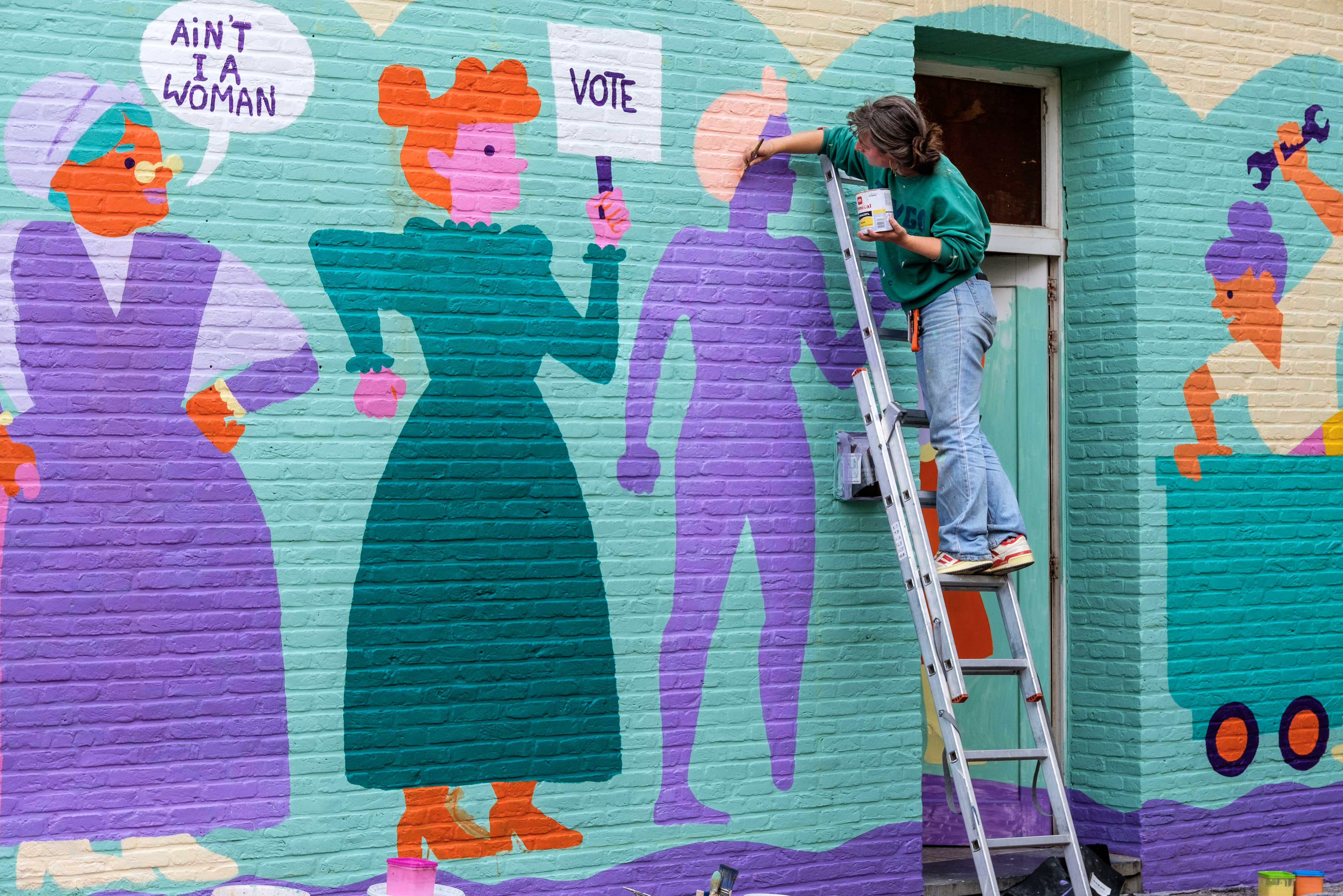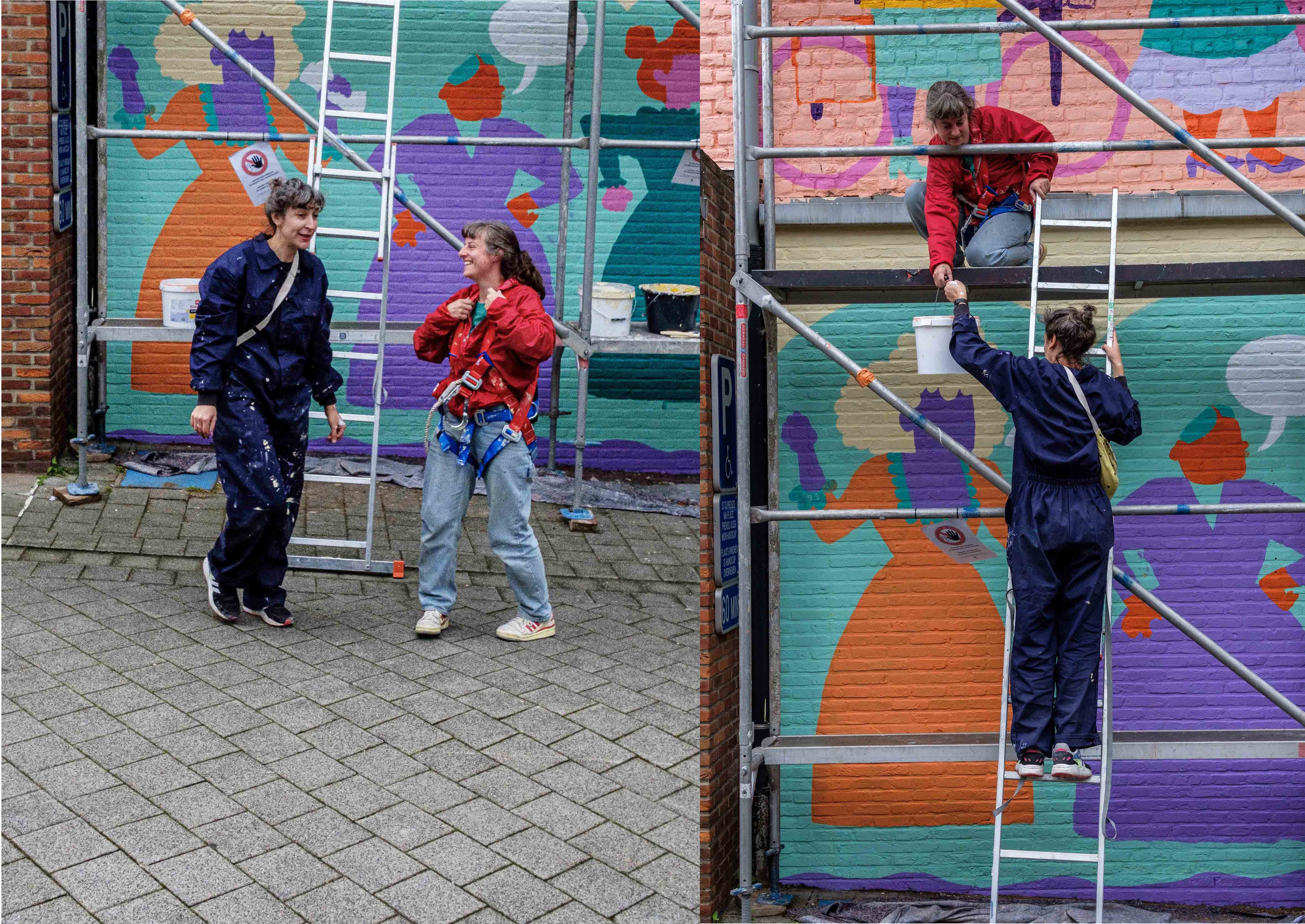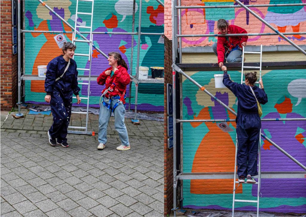 Naarmate ik dichter bij het werk ‘Non-Self’ kwam, leek het op grotwoningen, nissen, impressionistisch geschilderd, kleurrijk maar toch gedempt. Maar toen ik er met mijn neus voor stond, ging er een nieuwe wereld voor me open: pointillistisch, maar impasto, nat-in-nat, met ontelbaar verschillende heldere pigmenten, extreem gecontroleerd geschilderd, geen spat te veel, op sommige plaatsen is het canvas nog te zien, een levende cursus kleurentheorie, een ode aan de materialiteit van de olieverf, de pure abstractie van in elkaar overvloeiende helle pigmenten die vanop afstand een figuratief beeld vormen dat heerlijk zacht is, mystiek en vol diepte. Ik vond en vind het indrukwekkend, telkens ik ernaar kijk.