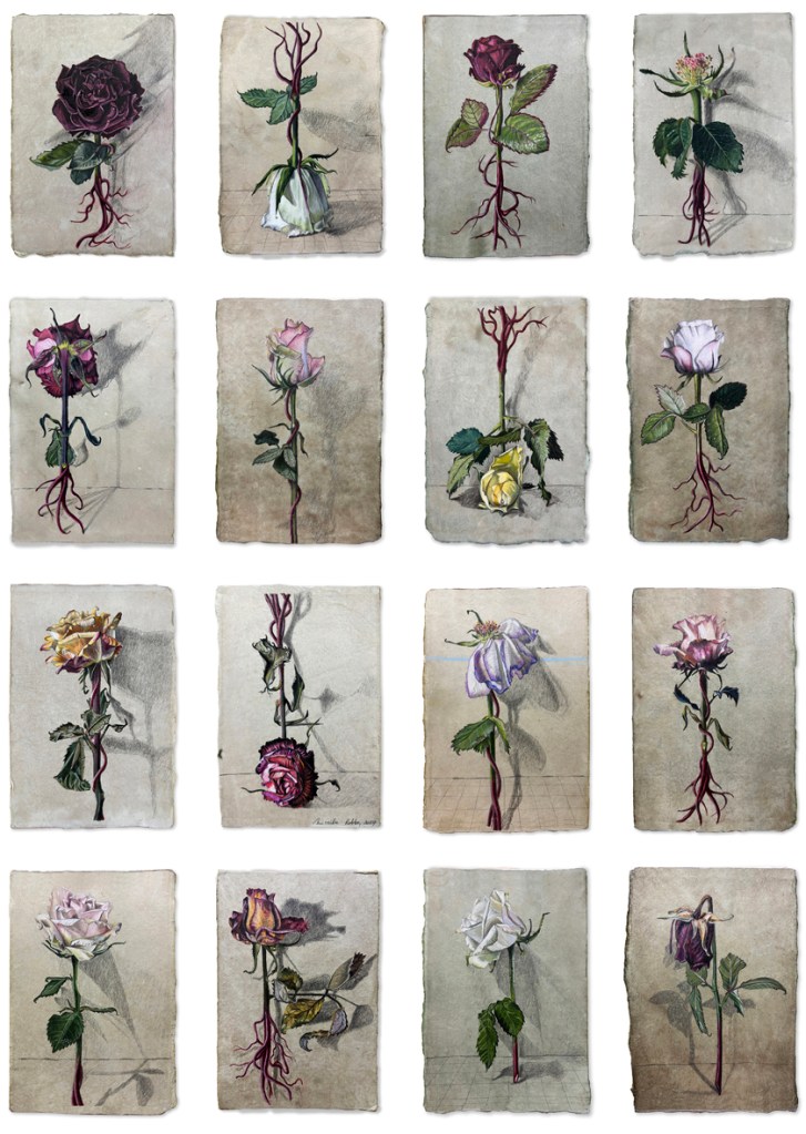 Het nieuw werk bestaat uit een 20-tal werken uit de reeks Rizoom die als baseline meekreeg: ‘Niet verlangen naar een hard nieuw begin, maar vertrouwen op de kracht van diversiteit en verbinding die breed verspreid en onderhuids tot nieuwe kiemen leidt.’