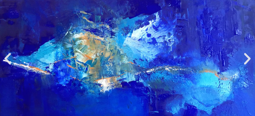 ‘Vanuit het spelen met blauw (deze kleur staat voor mij vaak voor verdriet, voor donkerte), het verwerken van verdriet, het aankijken van een schaduwstukje wordt toch het Licht geboren.
