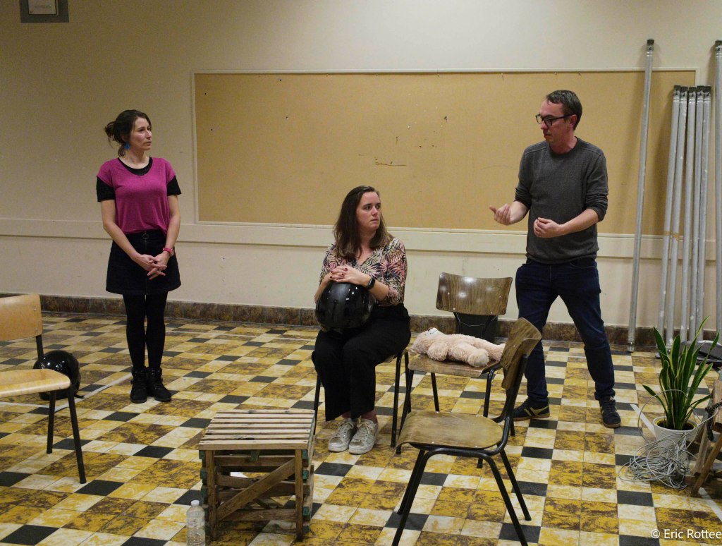 Na een paar scènes gespeeld te hebben, zitten de acteurs en de regisseur samen voor een debriefing en worden er soms aanpassingen voorgesteld voor de manier van spelen en bewegen. “De repetitie en de debriefing zijn belangrijk. Je voelt echt hoe (en wie)  je bent en hoe je dat personage kunt (moet) spelen.” zegt Femke, een van de actrices. De acteurs kennen de tekst. 30 repetities van twee uur waren er nodig om na drie maanden op dit punt te komen.  En daarnaast moesten de acteurs de tekst apart leren. Soms als ze een scène moeten herspelen en herbeginnen op een bepaald moment, vergeten de acteurs het begin van de tekst. Arlette, de souffleuse helpt om de draad terug op te nemen.
