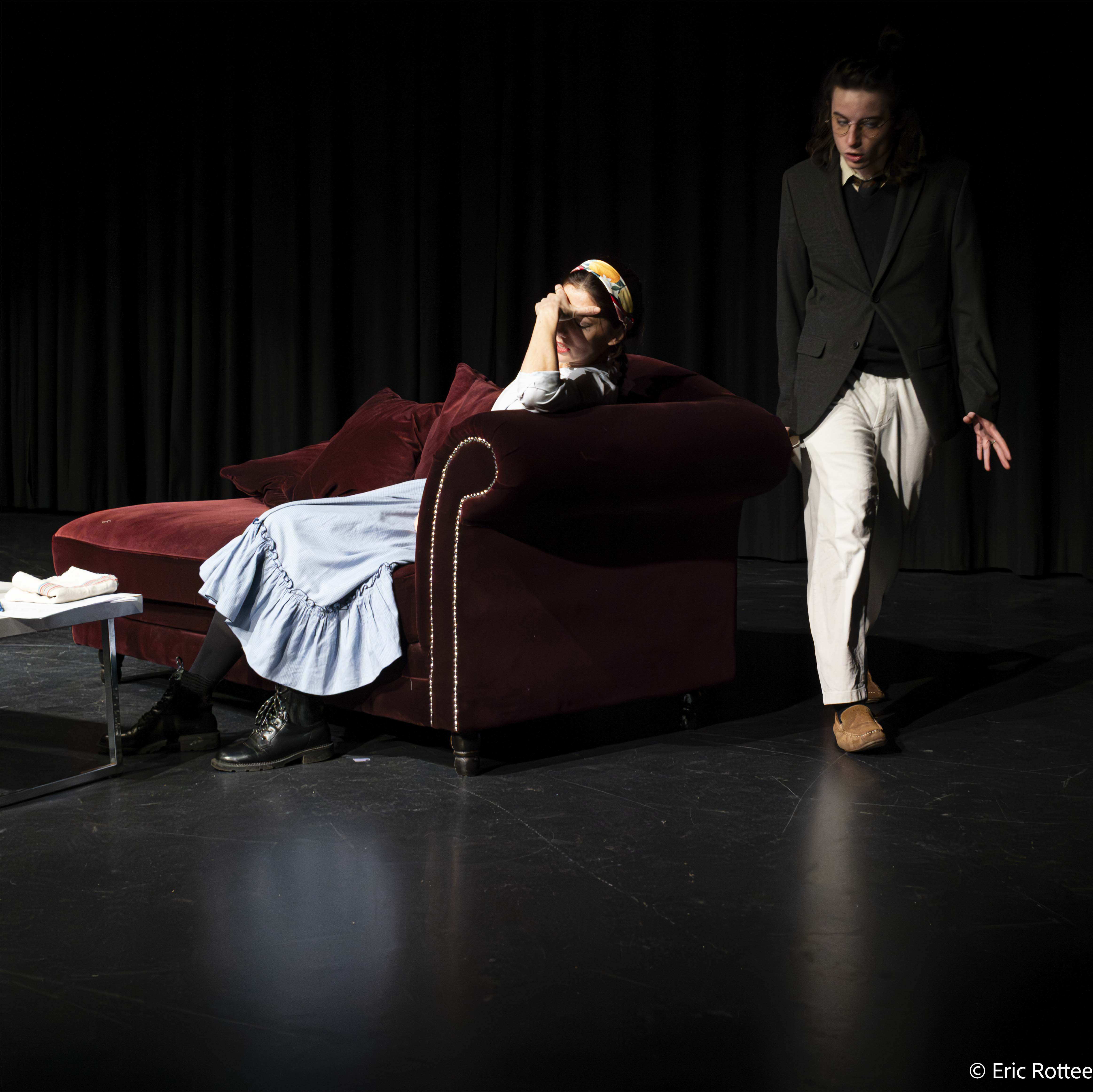 Raphaël, Brenda en Isabelle zijn drie gepassioneerde acteurs. Raphaël woont naast de universiteit. Als student in Lyon nam hij ook al deel aan theaterateliers. Sindsdien is hij een gepassioneerd acteur. Hij brengt zijn ervaring mee naar het atelier in Brussel, bijvoorbeeld tijdens de oefeningen aan het begin van elke sessie. Hij speelt twee totaal verschillende rollen: de man die een huwelijksaanzoek doet (Tsjechov) en de slager die verliefd is op een juwelierster. Een extravert en een introvert personage.