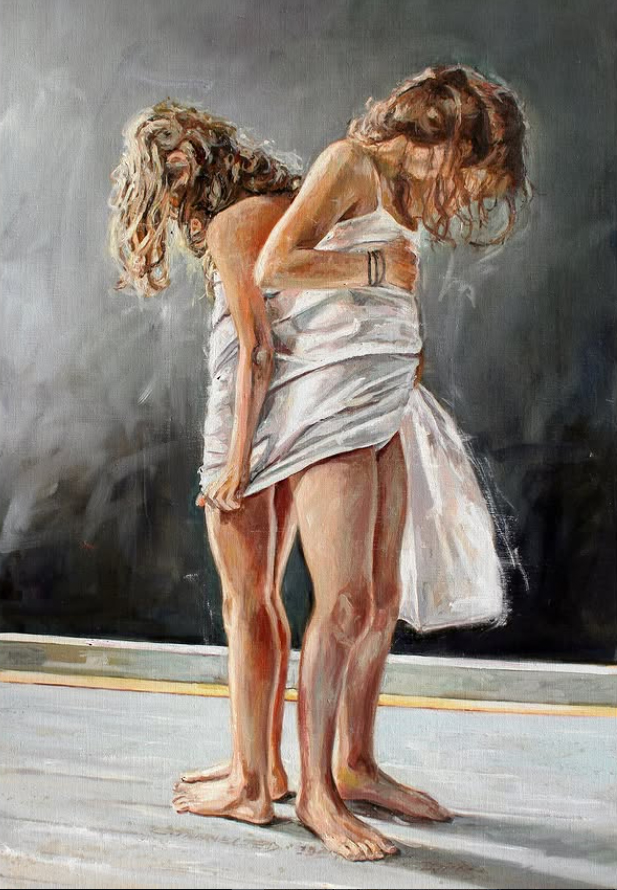 Hervé Martijn Dat is zo gegroeid. Een schilderij grenzend aan een portret creëert afstand van de kijker. Die vindt het mooi geschilderd maar niet meer dan dat. Een model dat wegkijkt, verzonken is in gedachten of een daad stelt, krijgt meer aandacht omdat een emotionele beeldtaal de kijker boeit. Persoonlijk voel ik me ook meer aangetrokken tot het melancholische in een schilderij.