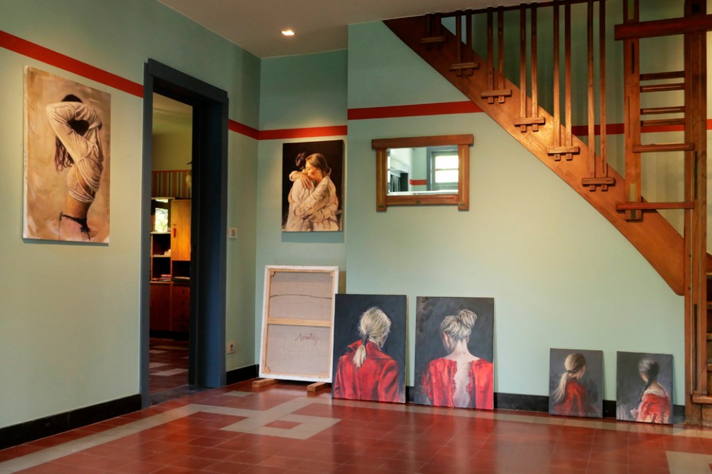 Hervé Martijn Ongetwijfeld, tot 25 jaar geleden schilderde ik louter grisaille werken. Mijn atelier bevond zich toen thuis op zolder. Ik was zeker geen colorist. Door de hier aanwezige modernistische kleuren schakelde ik stapsgewijs, langzaam over naar meer kleurgebruik. Heel veel kleuren zitten letterlijk in mijn deuren en muren.