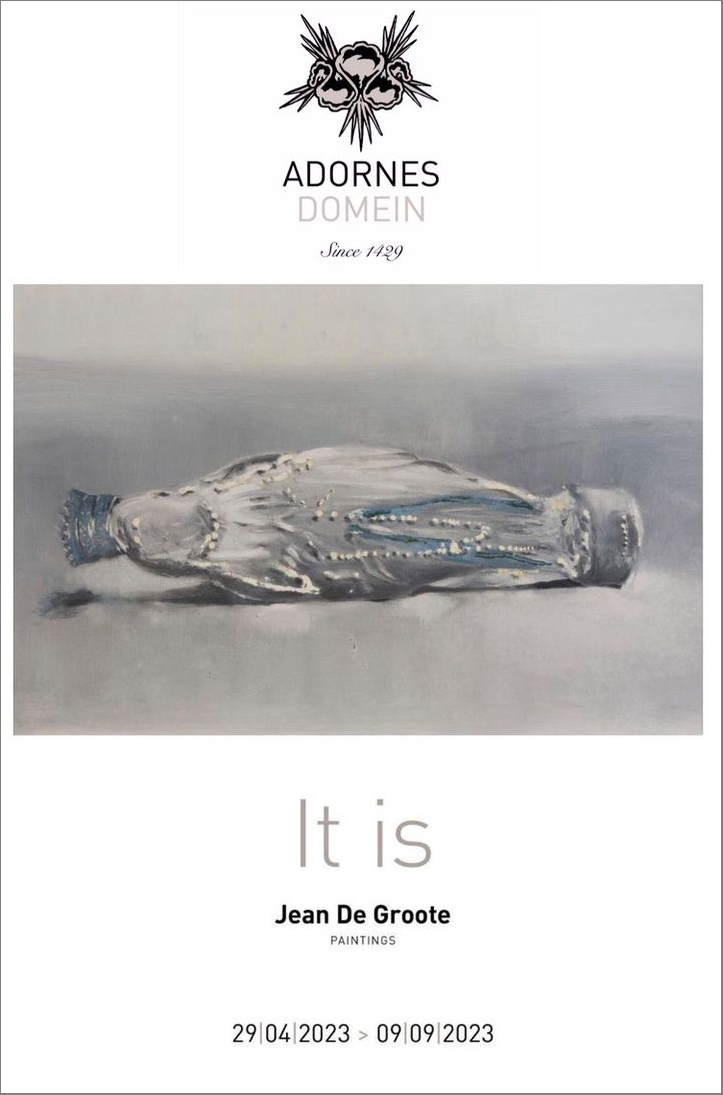 In de tentoonstelling ‘It is’ wordt het werk van Jean De Groote geconfronteerd met de architectuur en de kunstwerken van het landgoed Adornes en de Jeruzalemkapel, die vol geschiedenis en betekenis zijn. Het roept een reeks fundamentele vragen op over de relatie tussen zijn en tijd, conventies, spiritualiteit en doen.