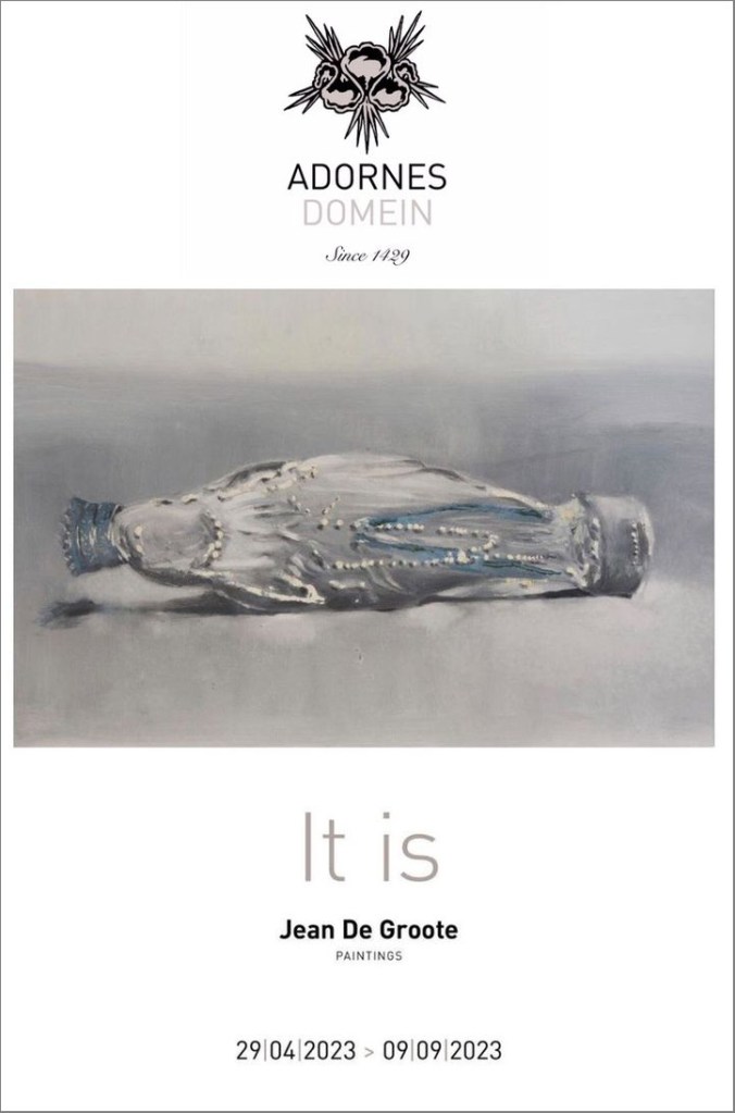 Van 29 april 2023 tot 9 september 2023 is het de beurt aan kunstenaar Jean De Groote met de expo IT IS opening op uitnodiging zaterdag 29 april om 17u tot 20u in aanwezigheid van de kunstenaar. Toespraak van Johan Debruyne om 17u30