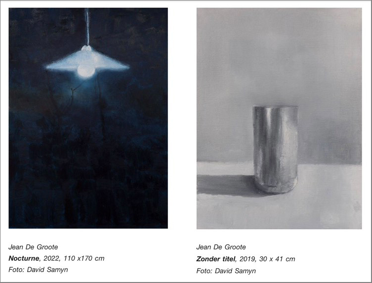 In een twintigtal werken laat Jean De Groote ons nadenken over de essentie van de dingen, over wat het is te bestaan, te zijn. Zijn eenvoudige onderwerpen op sobere achtergronden vormen een bijzonder soort stilleven, waarin de voorwerpen, zonder enige betekenis of functie, baden in een diepe stilte en volstaan met te zijn. Zo zetten zijn schilderijen aan tot nadenken over zowel het onzichtbare als het zichtbare. Een serene en esthetische kunst, maar wel een die ons kan onderdompelen in metafysische vragen die aan de grenzen van het begrip van ons menselijk brein liggen.