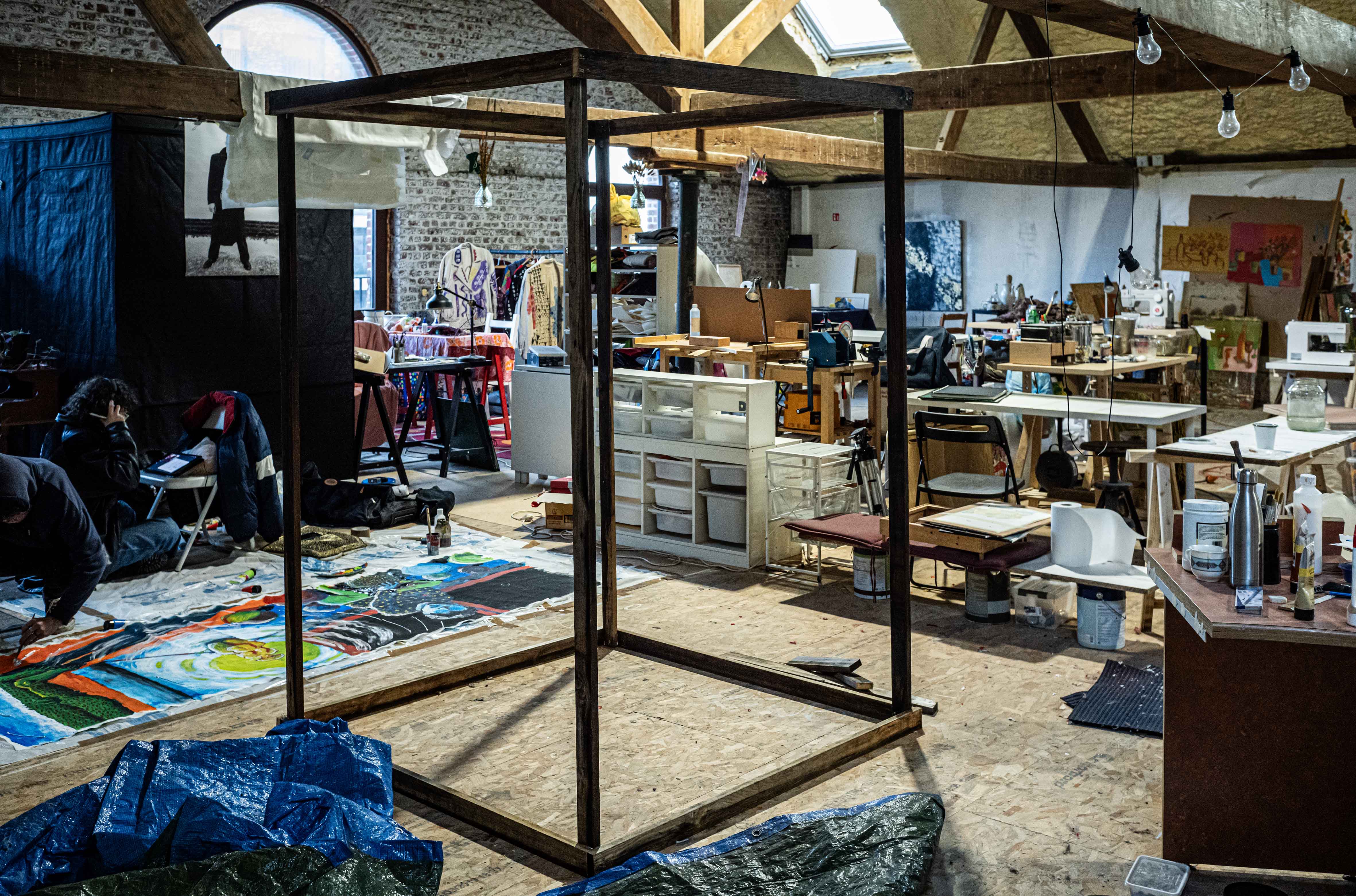 Anne Van Wayenberg in het atelier beeldhouwen Academie voor beeldende kunst (DKO) Gent