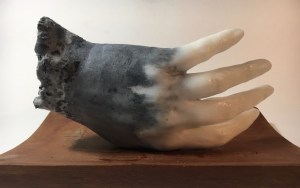 Jean De Groote stelt drie schilderijen tentoon. Vooral het werk ‘Volle maan’ soms noemt hij het schilderij ‘Holzwege’ baadt in mysterie en toont letterlijk en figuurlijk een donkere kant. De geschilderde zwarte vlakken tonen een vakmanschap van 45 jaar. De zwartgrijze tinten zijn zo geschilderd dat je automatisch op ontdekking gaat naar vorm en inhoud van het werk. Het werk is niet anekdotisch, Jean De Groote verliest zich niet in details. Daarom laat dit werk een desolate, sombere indruk na.