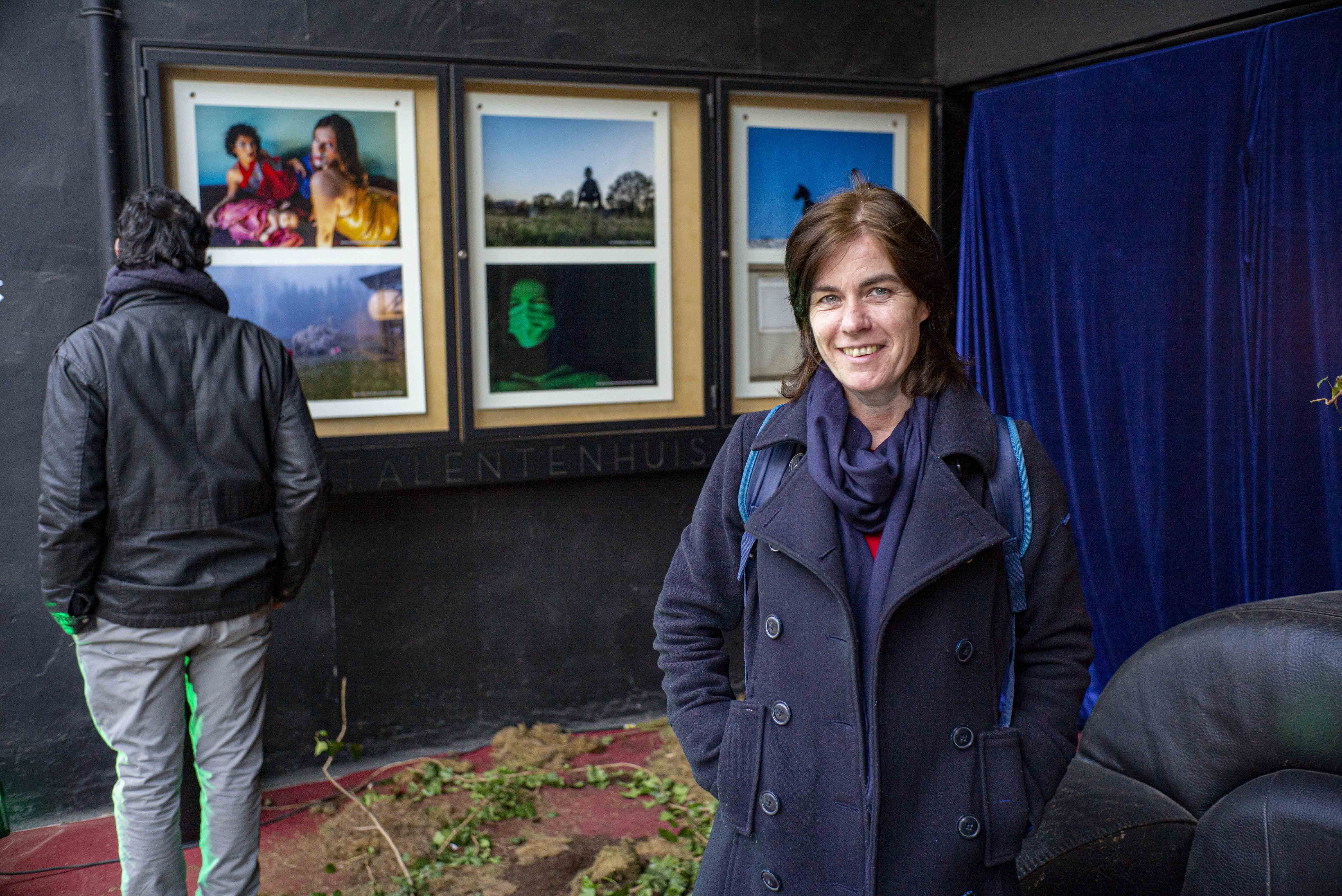 Naast het restaurant staat een bord met het parcours dat begint op de dijk. Vandaar zie je de reusachtige schepen, geladen met hun duizenden containers. Een rare achtergrond voor foto’s. Het zijn wat we kunnen noemen ‘conceptuele foto’s’. Soms een enkel beeld, soms twee beelden samen. Geen uitleg, behalve bij een beperkt aantal waarbij je aan de hand van de QR-code kan luisteren naar een verklaring van de kunstenaar. Eén gaat over woonwijken, een andere over een café die de fotograaf jarenlang heeft bezocht. Boeiend!