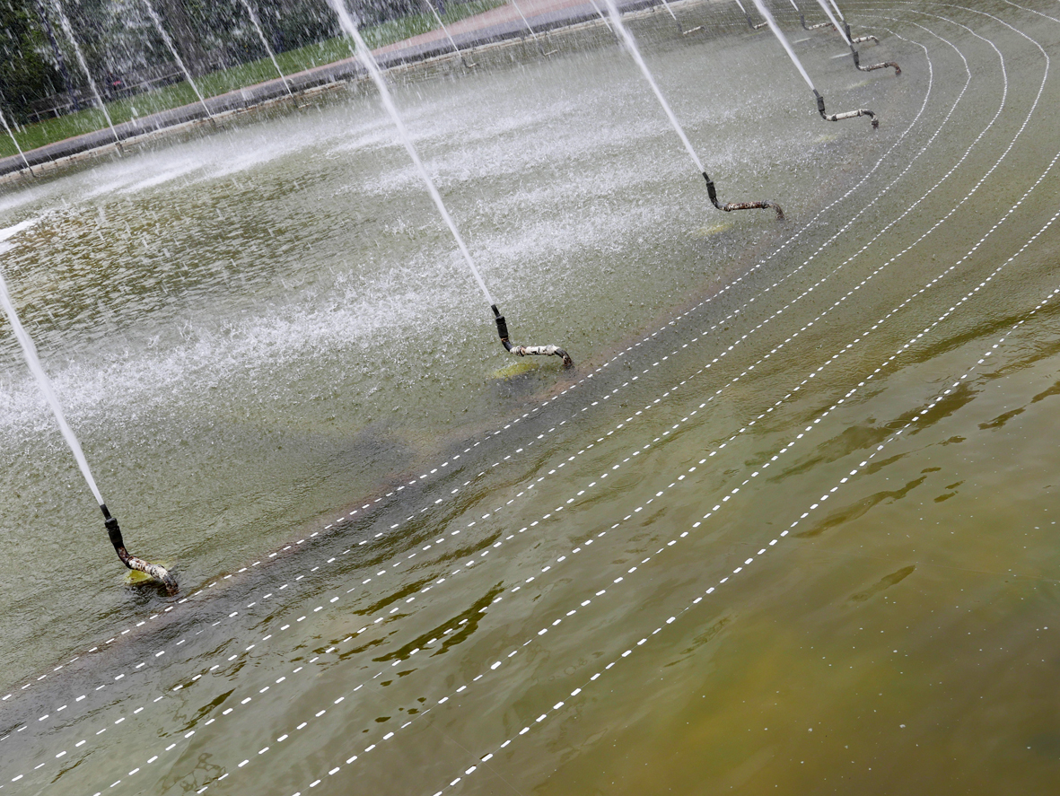 Conceptueel kunstenaar Sabine Oosterlynck laat in het Zuidpark etiketten drijvend dansen op het water. Water is hier het draagvlak, de aan elkaar gestikte etiketten de tekening.