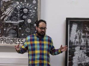 Ilde Ik wilde de 2 kunstenaars met elkaar confronteren. Sara Greet Gilis is een beeldhouwster die ook tekent. Haar tekeningen verkennen de grens van de realiteit en graven diep in de menselijke psyche. Voor GAST creëerde ze een 5 meter lange tekencollage met surreële bevreemdende wezens en ingewanden. Haar werk is ingetogen daar tegenover plaats ik het werk van Guilherme De Oliveira die schreeuwt en om zich heen schopt. Hij laat een paranoïde wereld zien. Zijn werk is cynisch en vol humor. Ondanks de wezenlijke verschillen in hun oeuvre zijn ze beide op zoek naar de essentie van ‘La condition humaine’.