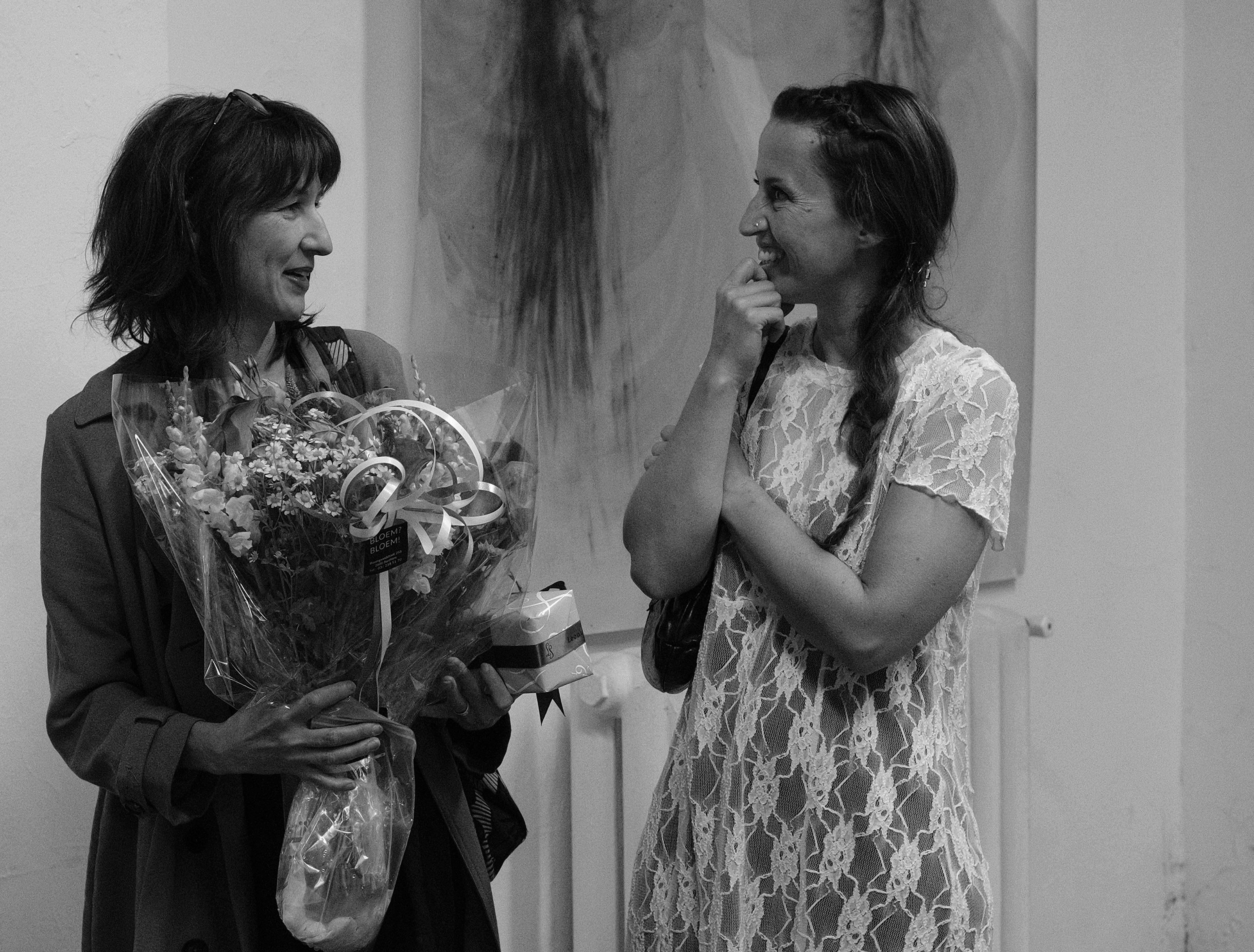 Kunstpoort De drukke muur boordevol werk doorspekt met tekst van Guilherme De Oliveira eist de aandacht op tot je een tegenovergestelde wand in de gaten krijgt. Dit is werk van kunstenaar Sara Greet Gilis waar je stil van wordt. Van waar deze keuze?