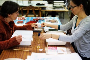 Tijdens drukdrukdruk konden geïnteresseerden zelf aan de slag en van een aantal technieken een eerste (in)druk maken. Nieuwsgierige bezoekers leerden op een eenvoudige manier papier marmeren.