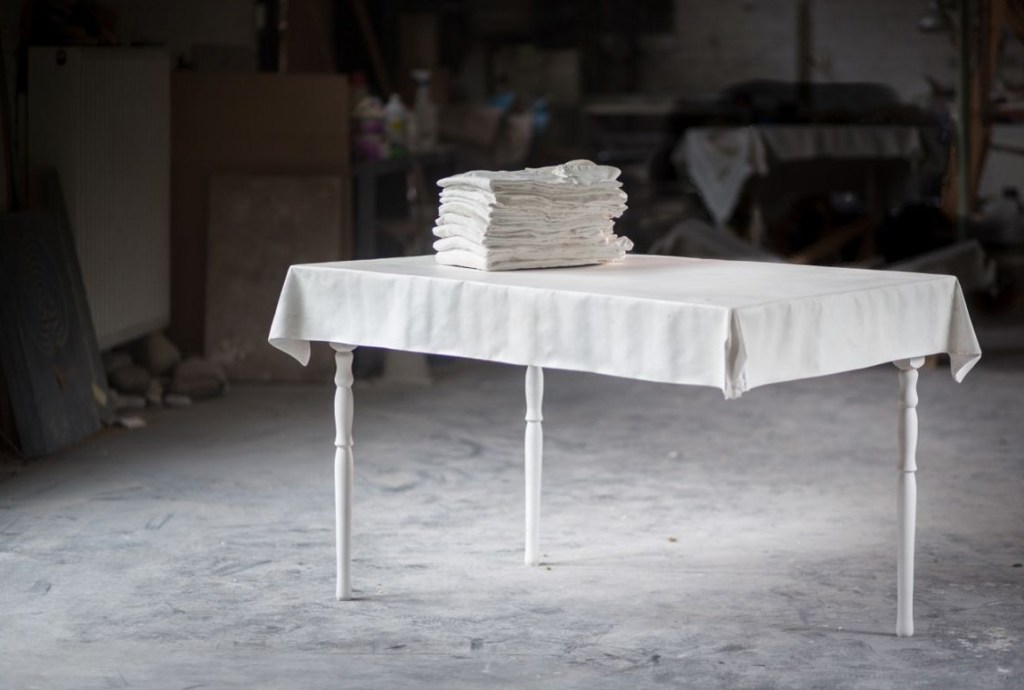 Elk kunstwerk verbergt ergens wel een levensverhaal, een anekdote of een ingrijpende gebeurtenis. De diversiteit aan materialen die Anne-Marie Dhaluin aanwendt, wekt heimwee naar een wirwar aan bobijnen, bonte draden en stiksels, naar een naaimachine die zoemend een gezellige huiskamer tot leven bracht. In haar huiskamer/atelier daar werkt ze nu, omringd door zoveel herinneringen, hier komt ze tot rust. Het sfeervol werken aan een gezellige tafel is dé verklaring voor eerder kleine formaten.