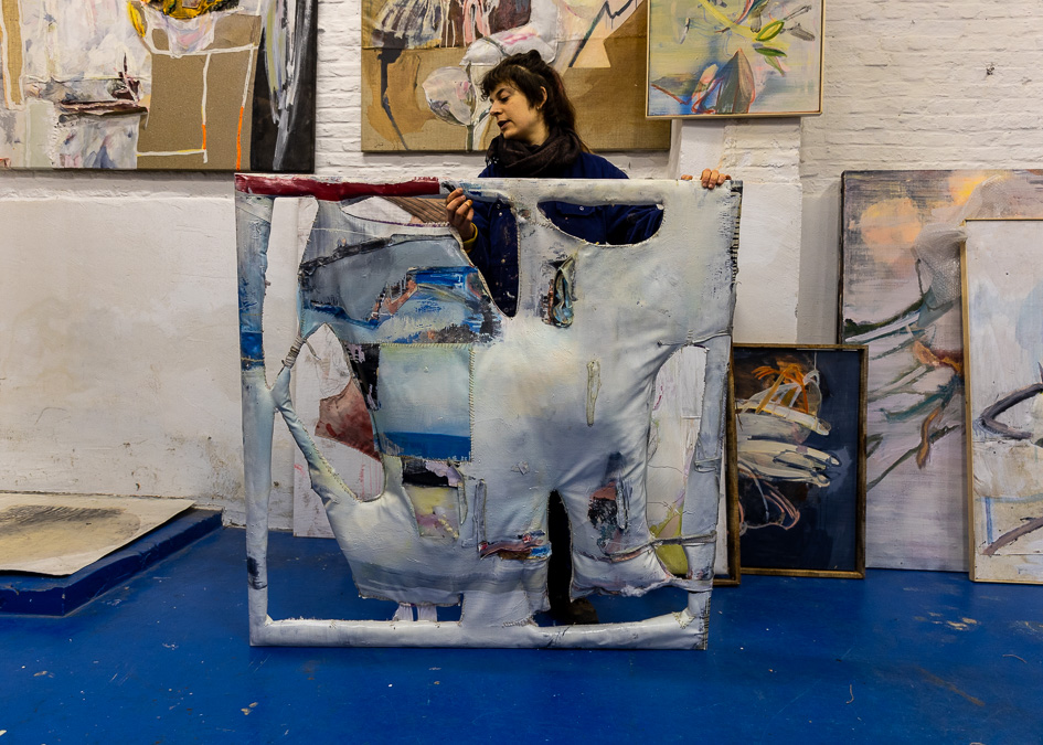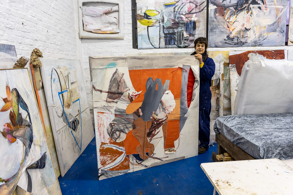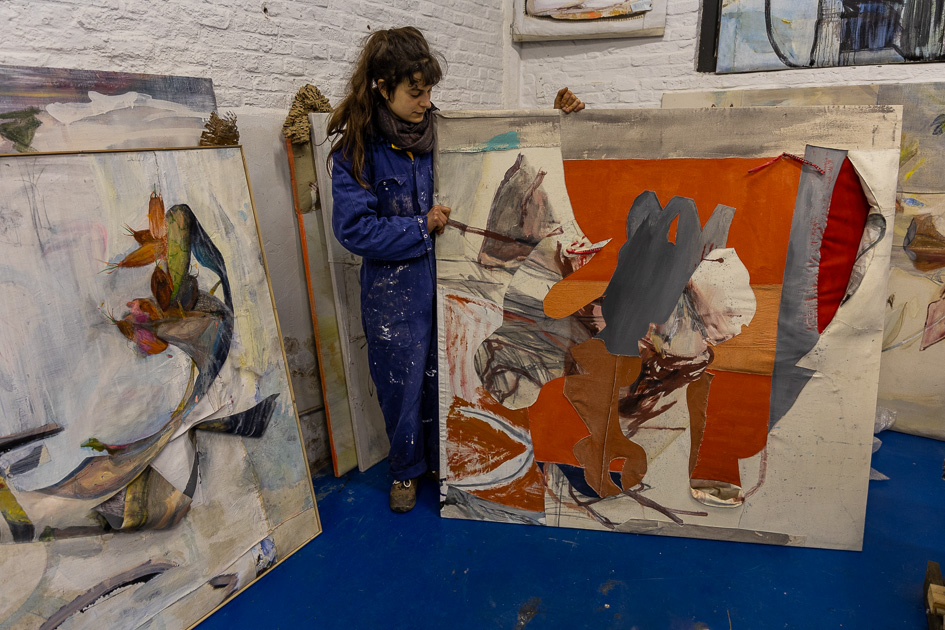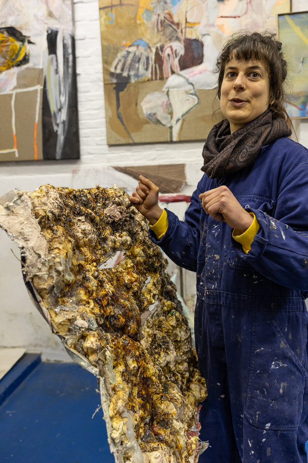 Anne Van Wayenberg in het atelier beeldhouwen Academie voor beeldende kunst (DKO) Gent