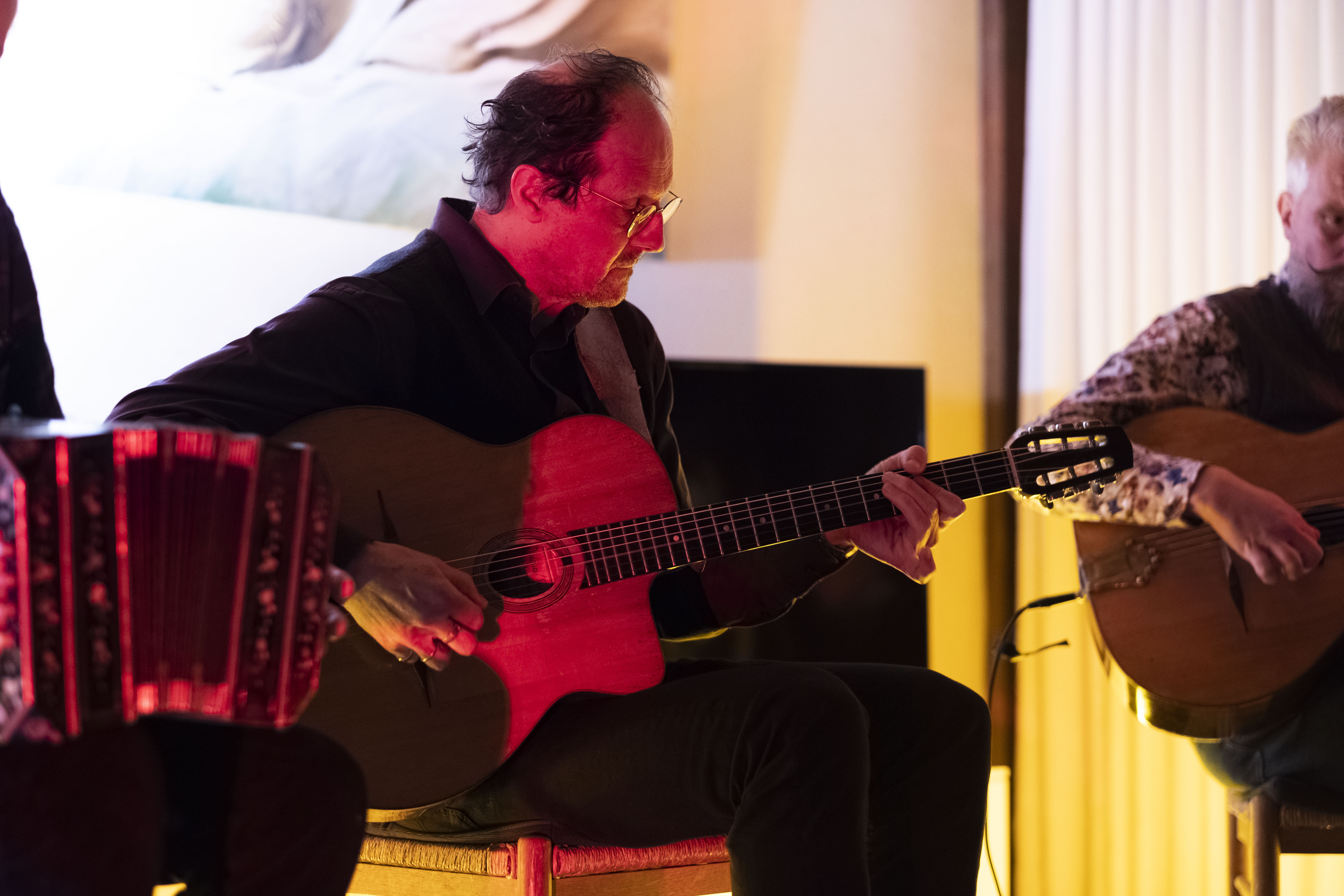 Met twee gitaren (Reinier Voet en Jan Brouwer) en een bandoneon (Dick van der harst) wordt een jazz-avond in Django-stijl geserveerd.