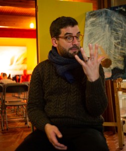 Het is niet de eerste keer dat Jonathan speelt voor een publiek in een privéruimte. Het huis van Rebecca is groot genoeg, het ademt een gezellige sfeer uit en de klank is goed. Een voordeel van dergelijke setting is zeker en vast het nauwe contact met het publiek: anders dan in een concertzaal waar het publiek zich als het ware in een donkere ruimte bevindt, zie je hier de reacties en emoties van de aanwezigen. Het geeft je de mogelijkheid om er direct op in te spelen.
