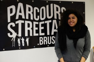 Eind 2018 reageerde ik op een projectoproep voor de stad Brussel, georganiseerd door het ‘Parcours street art’. Het ging erom een tekening op fresco voor te stellen die Brussel illustreerde, een nieuwe stad, een stad van de toekomst. Ik werd samen met 8 andere artiesten geselecteerd. Ik heb dit fresco gemaakt op een paneel van 2 m bij 3. Het was mijn eerste muurschildering, ik vond het erg leuk. Dankzij dit project dat ik voor Brussel deed aan de Kiekenmarkt werd ik rechtstreeks gecontacteerd door de verantwoordelijken die me vroegen of ik interesse had om deze muurschildering te maken.