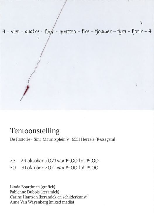 Deze tentoonstelling is elk weekend van 5 september en 18 oktober open.  De uren zijn van 14u tot 17u.  Het adres is: A. Rodenbachstraat 18 te 3500 Hasselt