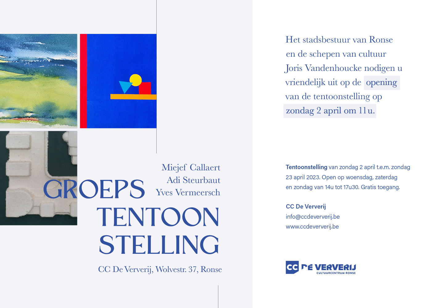 Locatie: Cultuurcentrum De Ververij Ronse – Wolvestraat 37 – 9600 Ronse