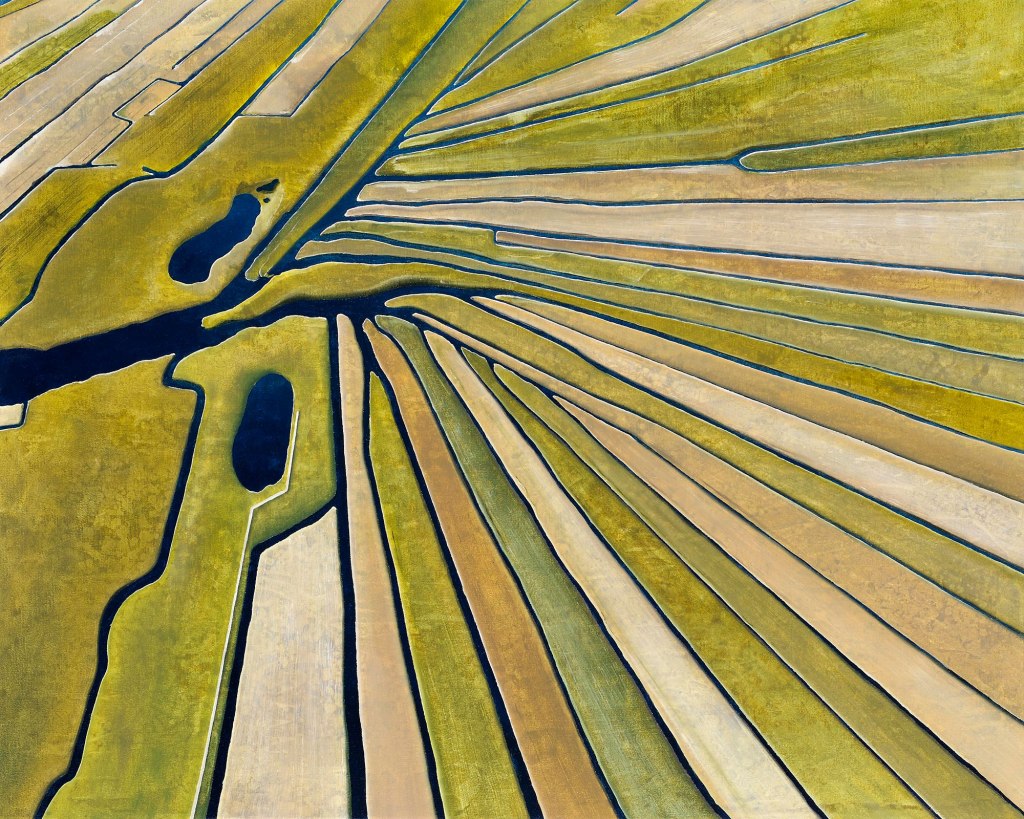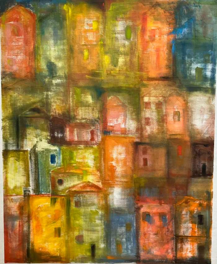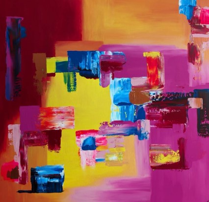 Bea Vanoverberghe geeft de wereld weer in abstracte lijnen en vormen. Voor haar schilderwerk gebruikt Bea Vanoverberghe canvas en acryl. Haar kleurenpalet is warm en zacht: geel, groen, oranje, oker, groene en bruine tinten. Aardekleuren. Uitzonderlijk vinden we een streepje blauw terug.