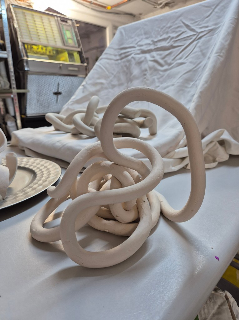 Een driedimensionaal model is het DNA van elk stuk. Ondanks de perfectie van dit theoretisch model, zorgt het groeiproces van de klei telkens voor verschillen in vorm en ziel.