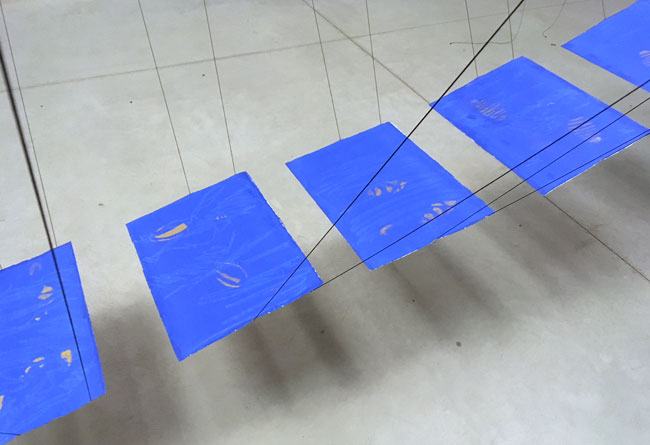 kleinscanIn de tentoonstellingsruimte van Nucleo, BLANCO, gaat tegenwoordig een tentoonstelling door met een experimentele vorm van presentatie. Twee kunstenaars, Conrad Willems en Joan Hus, tonen een selectie tekeningen en beeldend werk. De tekeningen krijg  je niet onmiddellijk te zien. Ze staan genummerd opgesteld met de rug naar het publiek. Bezoekers worden uitgenodigd een nummer te trekken uit 2 stapels kaarten. Een nummer van de ene stapel correspondeert met een tekening van Joan Hus, een nummer van de andere stapel verwijst naar een tekening van Conrad Willems. Deze 2 werken worden omgedraaid en opgehangen aan een witte lege muur.