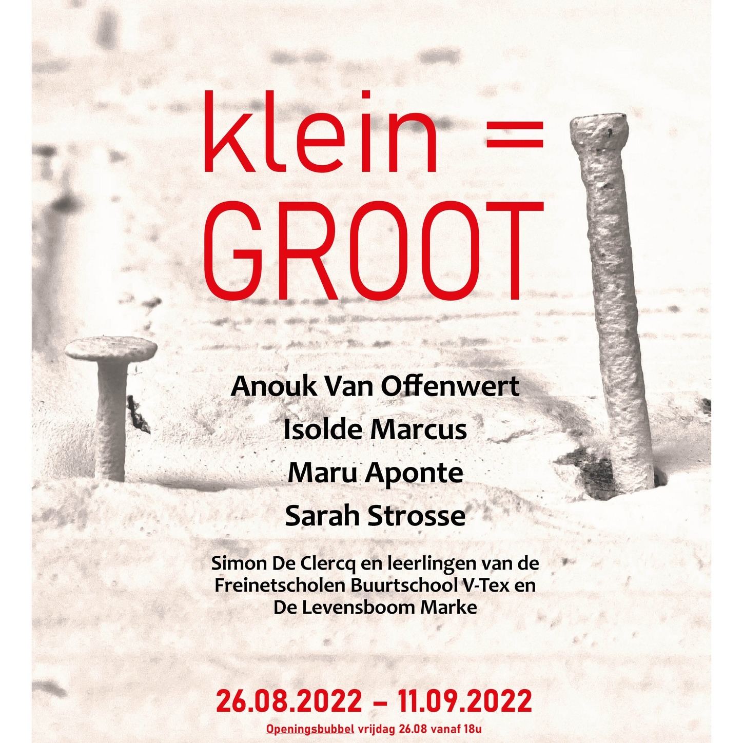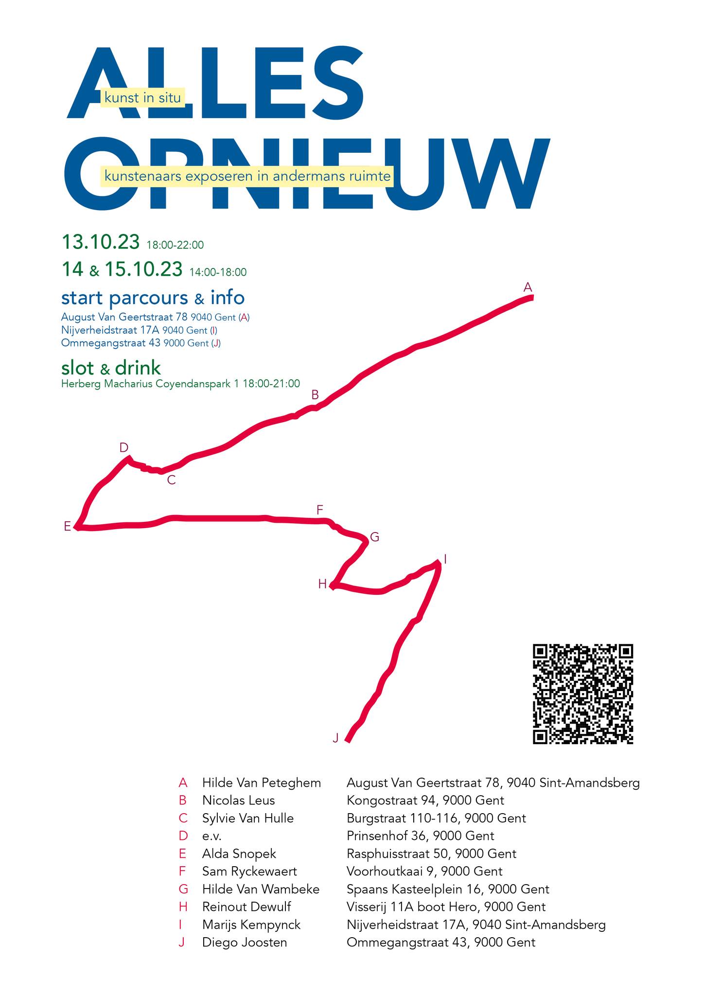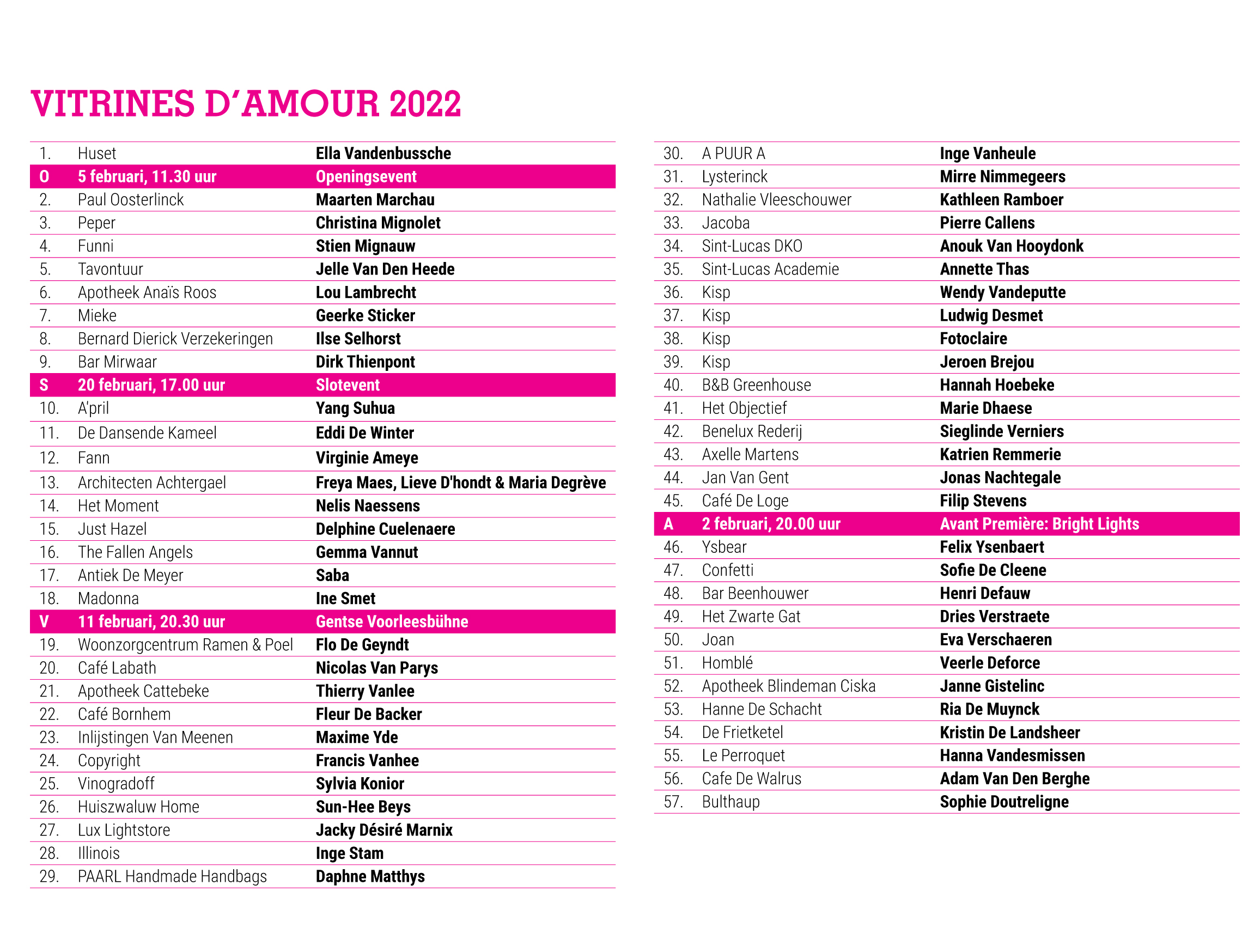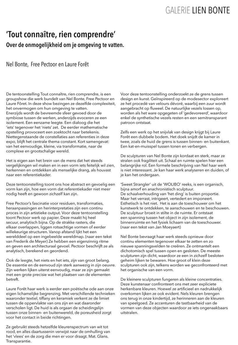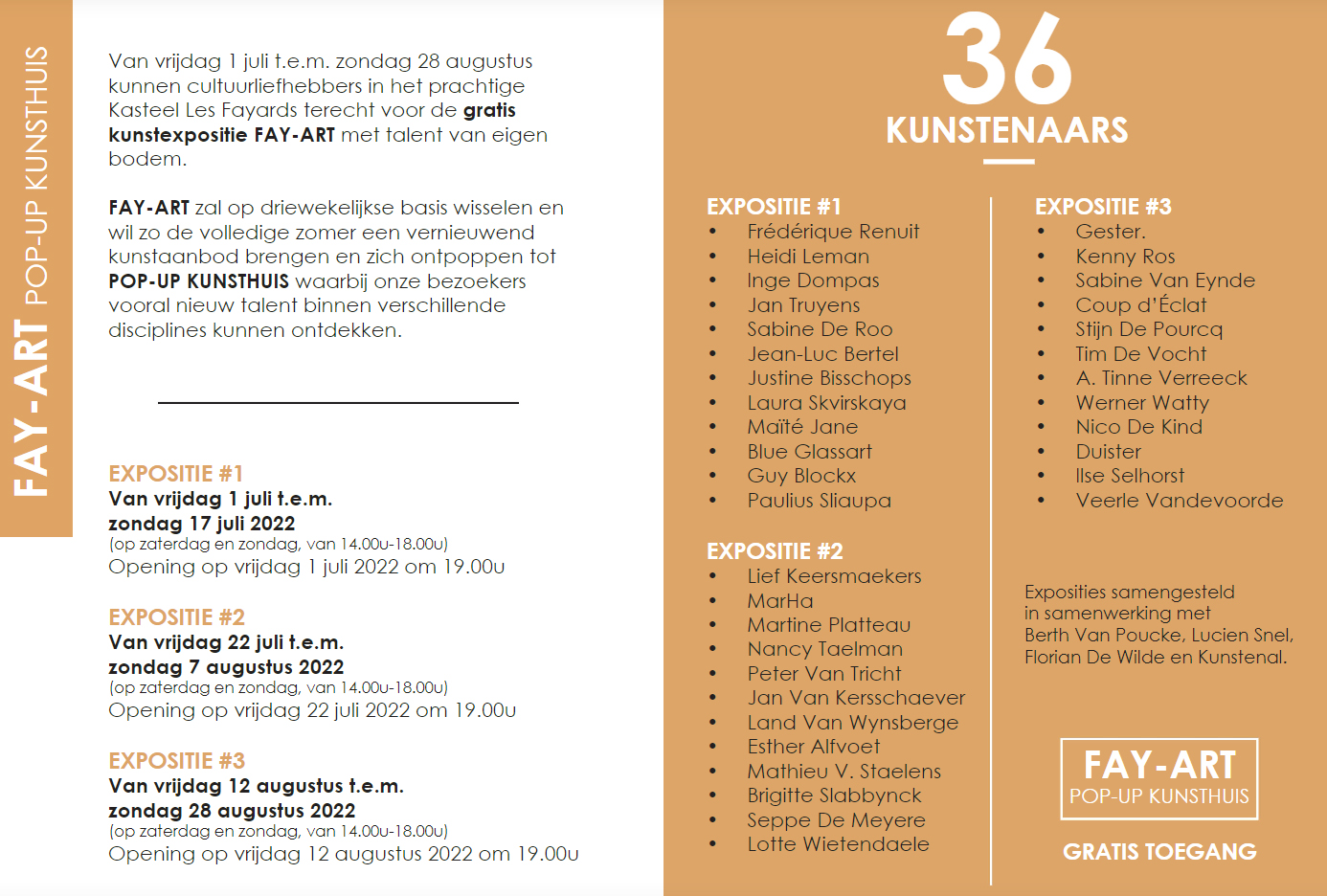 Chris Hubrecht, Phi, Jan Delestinne, Sylvie Janssens, Hilde Van Impe, Tessa Groenewoud, Topo Copy, Okke Vanbrabant, Kathleen Ramboer, Colette Cleeren, Eddy De Buf, Tom Van Nevel, Isa D’hondt,