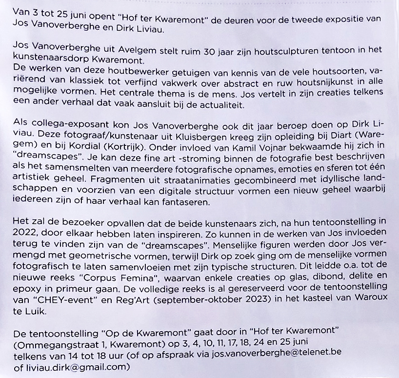 Tentoonstelling: zaterdag 4 en zondag 5 juni 2016, open van 14u.00 tot 18u.00