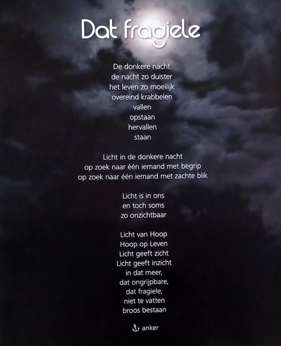 scherpe randen verdwijnen en enkel de essentie blijft overeind. De duisternis spreidt een deken van rust uit om zacht op te landen. Je keert naar binnen en dan doemen ze vanzelf op: de willekeurige herinneringen en indrukken, als in een droom.