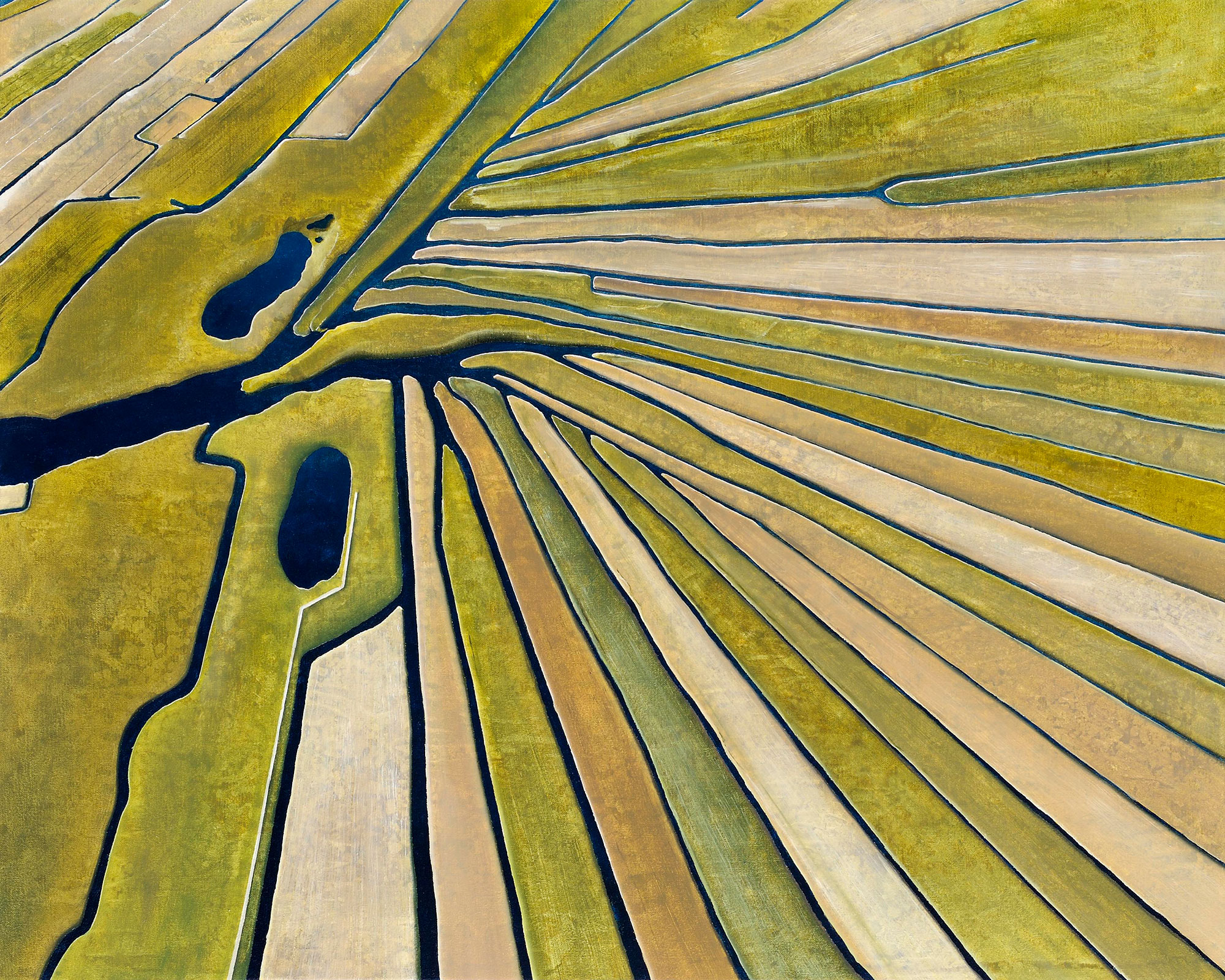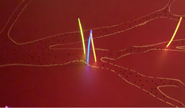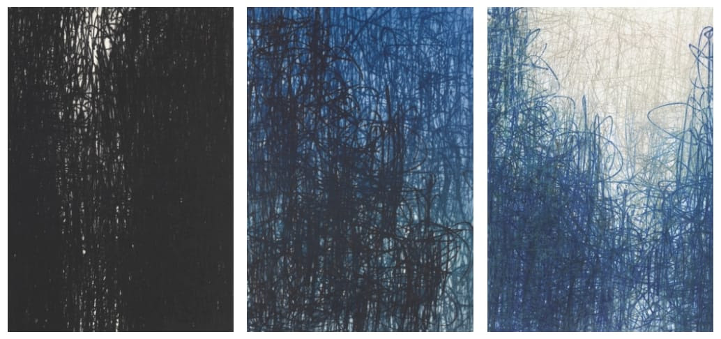 Deze wereld wordt onherkenbaar en krijgt een andere dimensie. Lijnen, kleuren, vormen, structuren staan centraal, alsook het contrast in het lichtpatroon.